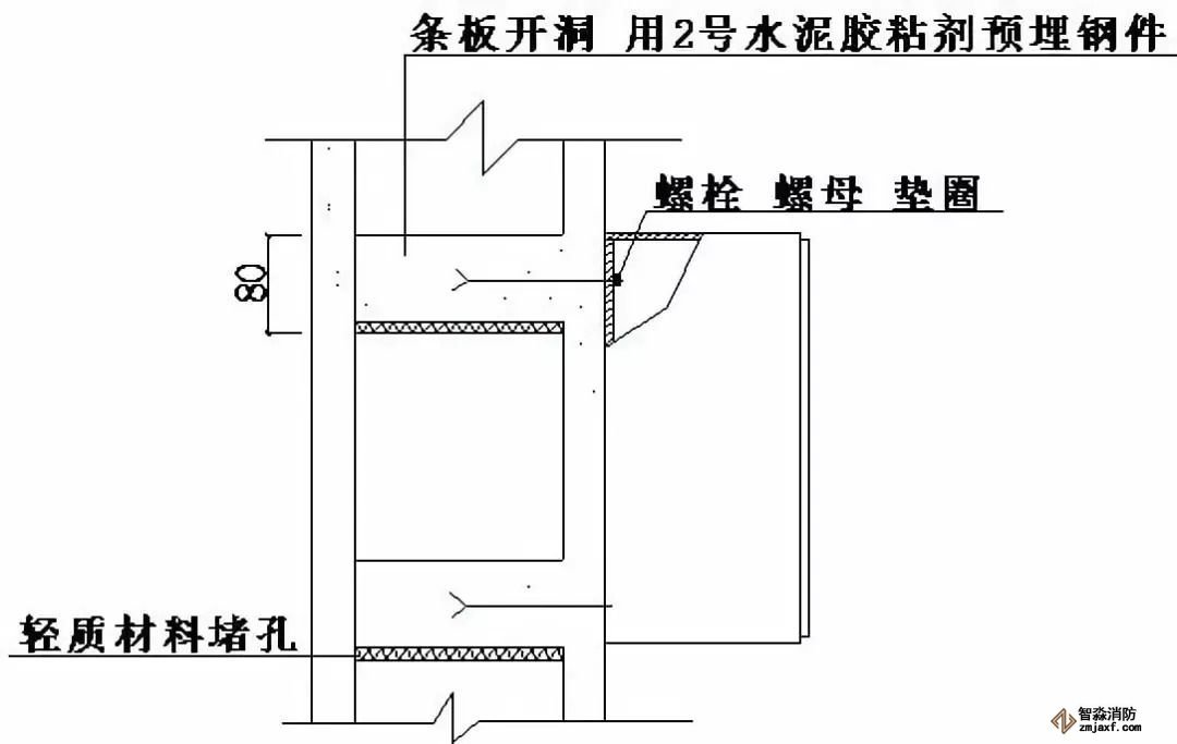 ⑷搭接板應(yīng)預(yù)埋,其與窗框或門框可螺栓連接或焊接。
