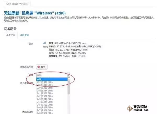 1.電腦直連接收端網橋lan口(或者poe模塊的lan口),ping發送端IP看能否ping通,如果ping不通說明網橋間未建立連接。檢查網橋是否正常供電,如果網橋都是正常工作狀態,檢查網橋配置,查看SSID,信道(頻率)設置是否一致(如下圖所示) ,兩端設備的信道和SSID一定要相同。另外,當同一局域網內有多對網橋時,要修改每對網橋的ip地址。