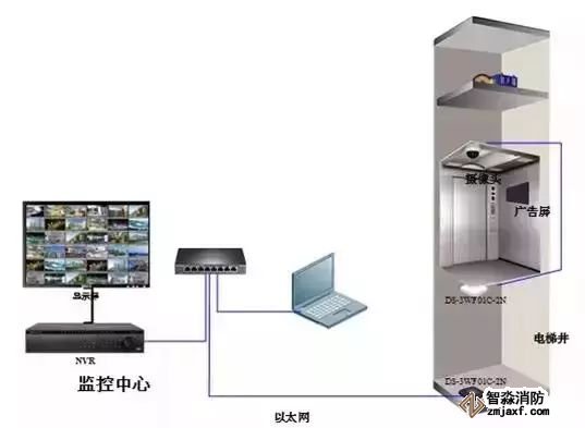 1、攝像機端安裝在轎廂上部,正面朝上,使用扎帶固定在轎廂上。