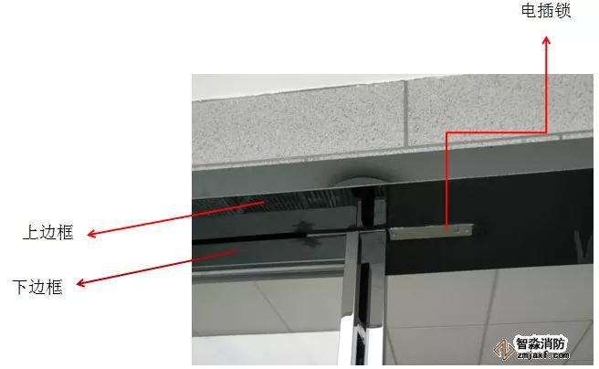 電插鎖是暗裝,要將鎖體埋入門框內,上圖是電插鎖最常見的安裝方式,要求玻璃門上下均有包邊