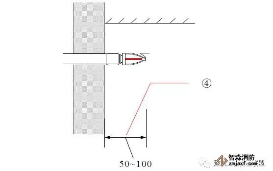 1、直立型噴頭安裝距樓板頂部距離為100mm