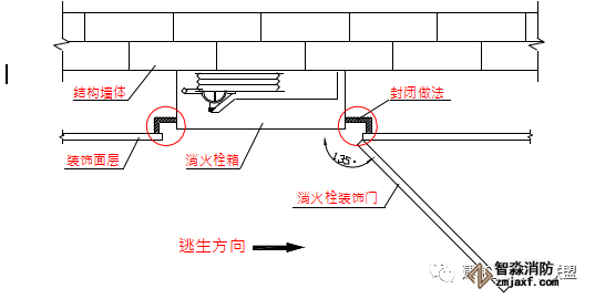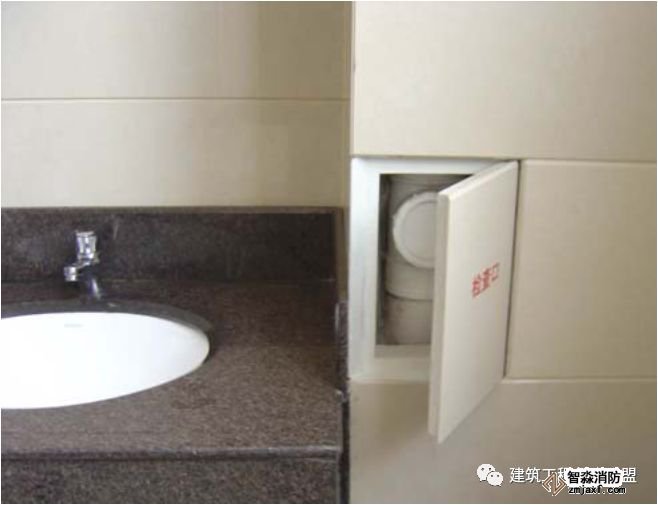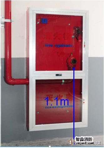 消火栓不在門軸側,應在開啟側;消火栓口中心離地高度為1.1 米,允許偏差±10mm