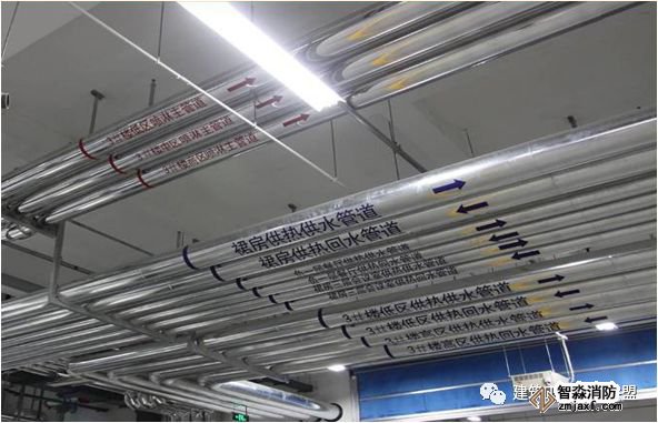 3、閥門與部件的兩端,三通橫管中部均設置支架,壓力排水污廢水管道指示與管道類別標示清楚,管道標志色為黑色