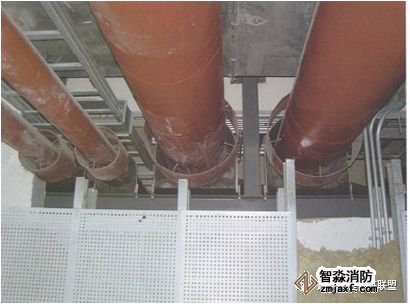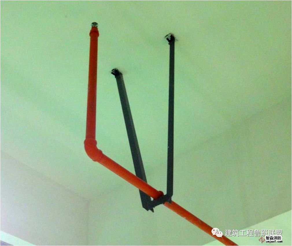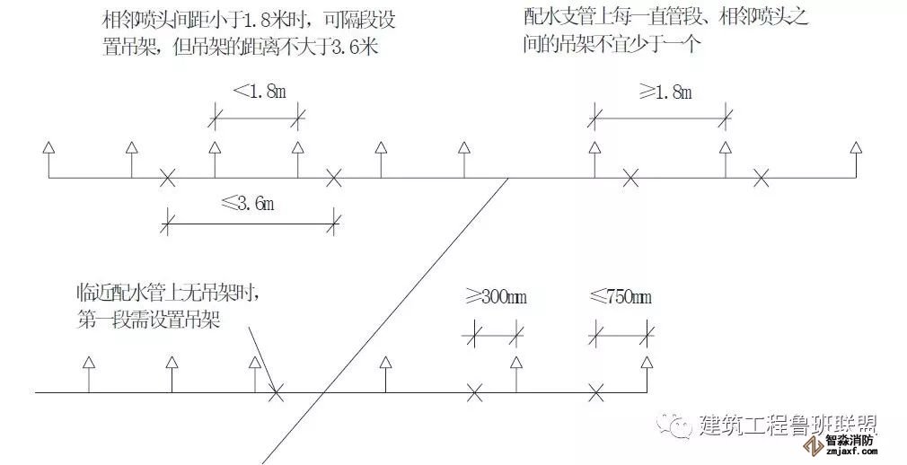 2、當噴淋支管高度大于1000mm時,應設橫向加強支架;末端支架與噴頭之間的距離為400mm