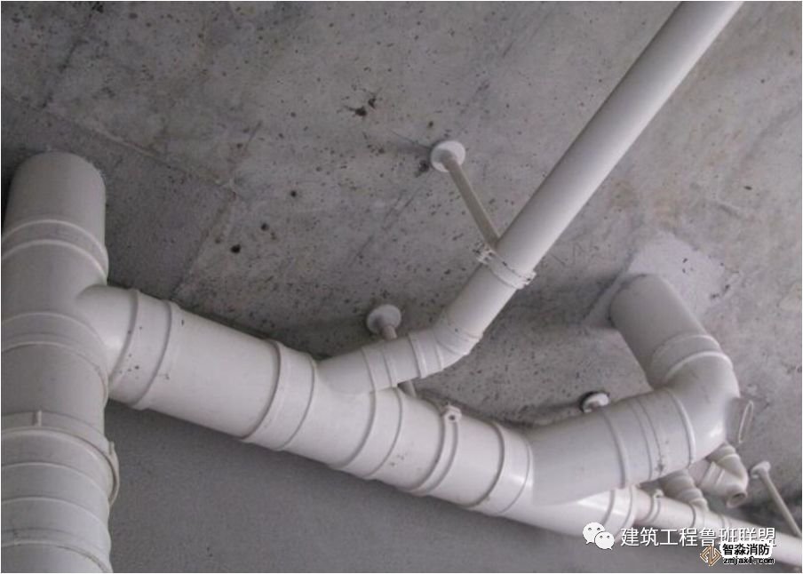 用于室內排水的水平管道與水平管道、水平管道與立管的連接,應采用45°三通或45°四通和90°斜三通或90°斜四通,封堵止水環