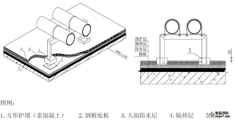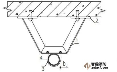 1.角鋼 2.連接板(10mm,做為承重支架,當使用80以上的角鋼時采用) 3.管碼 4.管道