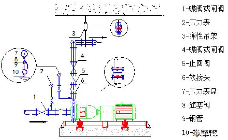 2、立式水泵不得采用彈簧減震器;大型立式水泵最好采用穩定性好的橡膠減震墊;多臺立式泵可采取組合機組安裝,增加水泵的整體穩定性