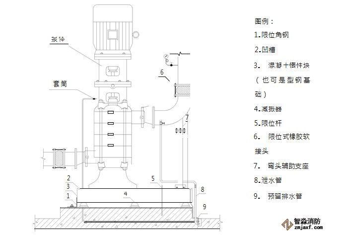 1、立式水泵底座下應設槽鋼基礎,擴大立式水泵基礎接觸面積,增加水泵平穩牢固性;槽鋼基礎與水泵底座螺栓剛性連接
