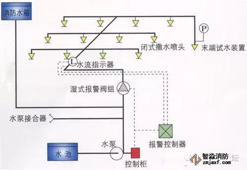在火災情況下,能自動啟動噴頭灑水滅火的滅火系統;主要由噴頭、、報警控制閥門、附件和配件、報警控制裝置等。