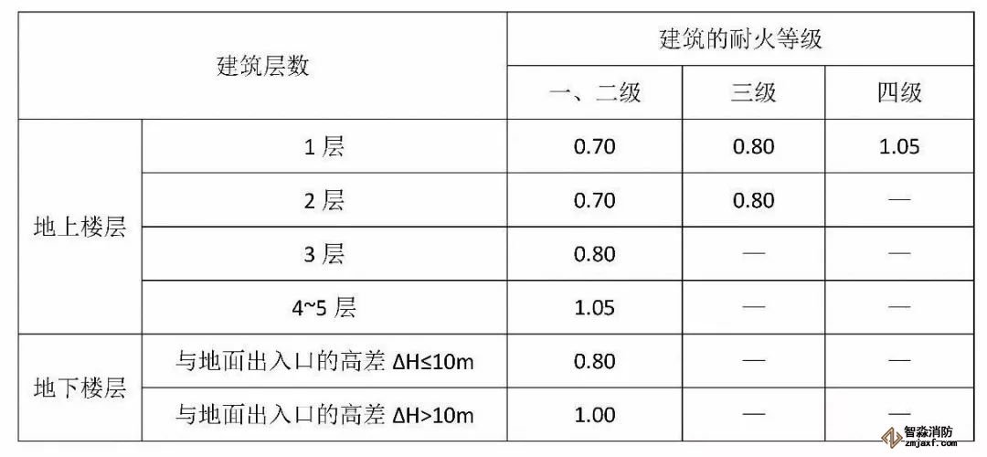 三、針對此情況,建議《中小學校設計規范》8.2.3的每100人凈寬度指標適應新版《建筑設計防火規范》要求,以總層數為單位取值,調整后的表格如下: