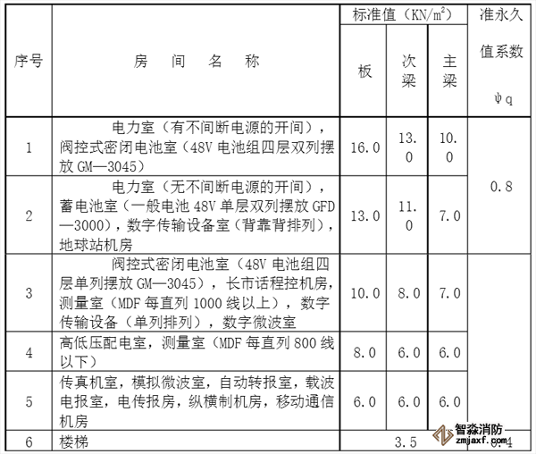 機房建筑樓面等效均布活荷載值,系根據目前已有的有代表性的通信設備的重量、排列方式及建筑結構的不同梁板布置,按內力(彎矩、剪力)等值的原則計算確定,機房的數值,也適用于無線尋呼機房4