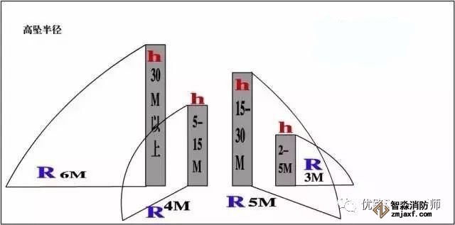 主要依據:可能墜落范圍半徑的規定 R根據hi規定如下:a)當2m≤hb≤5m時,R為3m;b)當5m<hb≤15m時,R為4m;c)當15m<hb≤30m時,R為5m;d)hb>30m時,R為6m.《高處作業分級》GB/T3608-2008