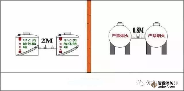主要依據:甲乙丙類液體儲罐成組布置時,組內儲罐的布置不應超過兩排,甲乙類液體立式儲罐之間的防火間距不應小于2M,臥式儲罐之間的防火間距不應小于0.8M。《建筑設計防火規范》(GB50016-2014)4.2.3
