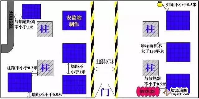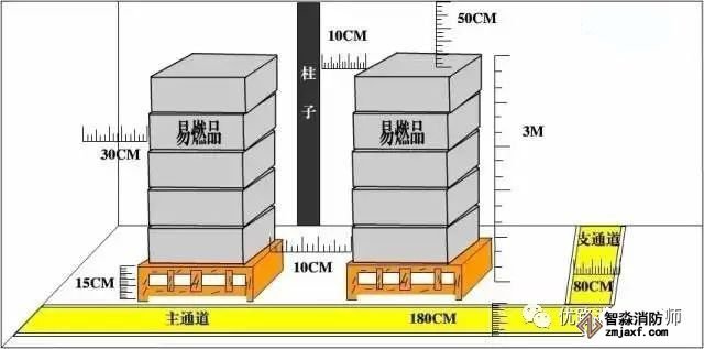 同時,還要注意:倉庫內的貨物在堆放時,不得圈占、堵塞消防設施,并應與倉庫內的電氣線路保持安全距離!倉庫內主要通道的距離不少于2米!