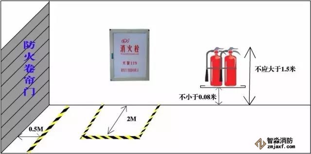 主要依據:滅火器的擺放應穩固,其銘牌應朝外。手提式滅火器宜設置在滅火器箱內或掛鉤、托架上,其頂部離地面高度不應大于1. 50M ;底部離地面高度不宜小于 0. 08M 。滅火器箱不得上鎖。《建筑滅火器配置設計規范》(GB50140一2005)5.1.3 防火卷簾門兩側各0.5m范圍內不得堆放物品,并應用黃色標識線劃定范圍。《人員密集場所消防安全管理》(GA654-2006)8.3.7 室外消火栓不應埋壓、圈占;距室外消火栓、水泵接合器2.0m范圍內不得設置影響其正常使用的障礙物。《人員密集場所消防安全管理》(GA654-2006)7.6.2.3