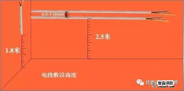 主要依據:護套導線距離地面最小距離,水平敷設:室內2.5米;垂直敷設:室內1.8米
