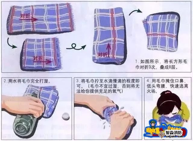 商場是物資高度集中的場所,商品種類多,發生火災后,可就近利用逃生的物資或工具。如將毛巾、口罩浸濕后捂住口、鼻,可制成防煙工具;