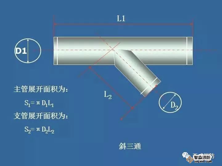 通風管道主管與支管從其中心線交點處劃分,以確定中心線長度,如下圖所示:
