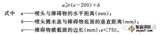 1障礙物橫截面邊長小于750mm時,噴頭與障礙物的距離,應(yīng)按此公式確定: