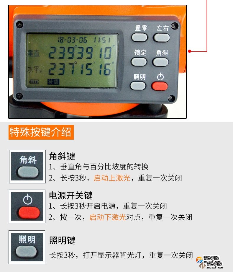 產品簡介:經緯儀是一種根據測角原理設計的測量水平角和豎直角的測量儀器,分為光學經緯儀和電子經緯儀兩種,目前最常用的是電子經緯儀。經緯儀是望遠鏡的機械部分,使望遠鏡能指向不同方向。經緯儀具有兩條互相垂直的轉軸,以調校望遠鏡的方位角及水平高度。經緯儀是一種測角儀器,它配備望遠鏡、水平度盤和讀數的指標、豎直度盤和讀
