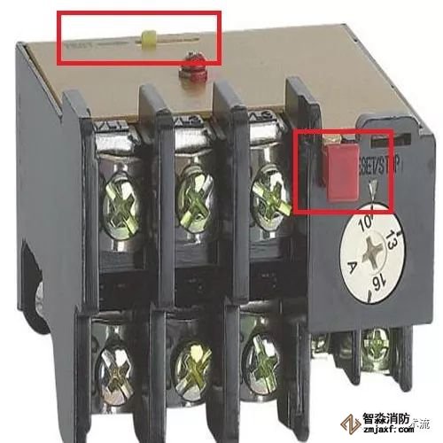 (上圖此類熱繼電器測試按鈕需揭開透明小蓋,用電筆插進里面的測試按鈕)