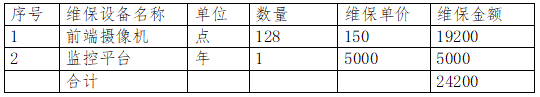 監控點:乙方所提供的服務費分攤至每一個攝像監控點,全年24200元;設備更換:對更換超過100元以上價值設備的費用,按招標合同價與甲方另行結算。