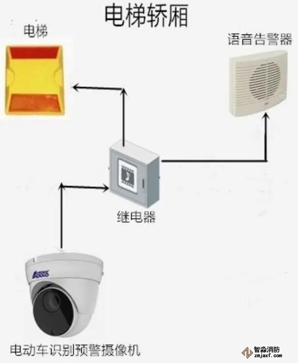 現場警報:當電動車推入電梯轎廂,攝像機識別到電動車時,語音告警器發出語音播報,播放阻止電動車進入的語音。