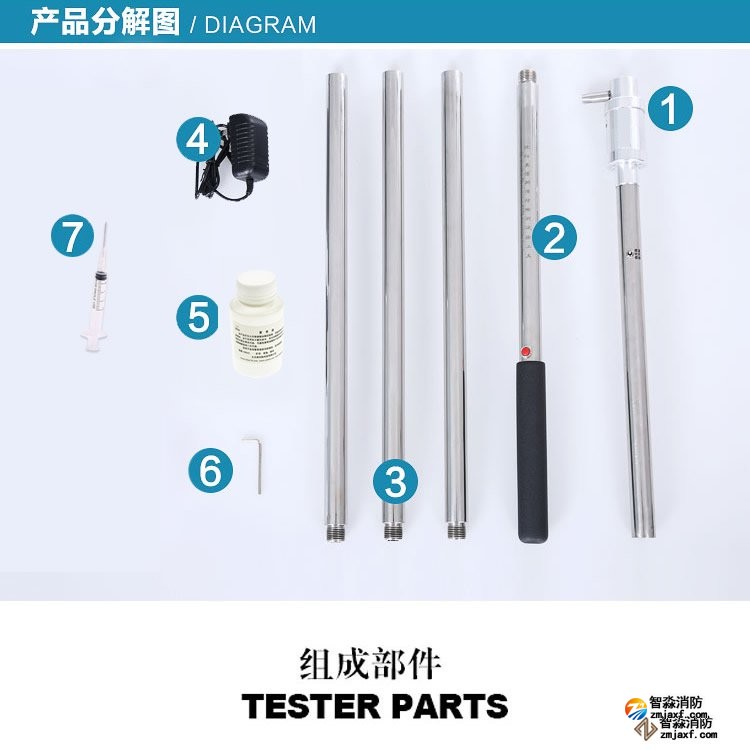 將槍頭、連接桿、電池桿相應(yīng)順次連接,調(diào)整好加煙方向,按動啟動開關(guān),指示燈亮,槍內(nèi)風(fēng)機工作,煙霧從噴頭出口噴入被試驗的火災(zāi)探測器感煙迷宮,進(jìn)行加煙試驗。